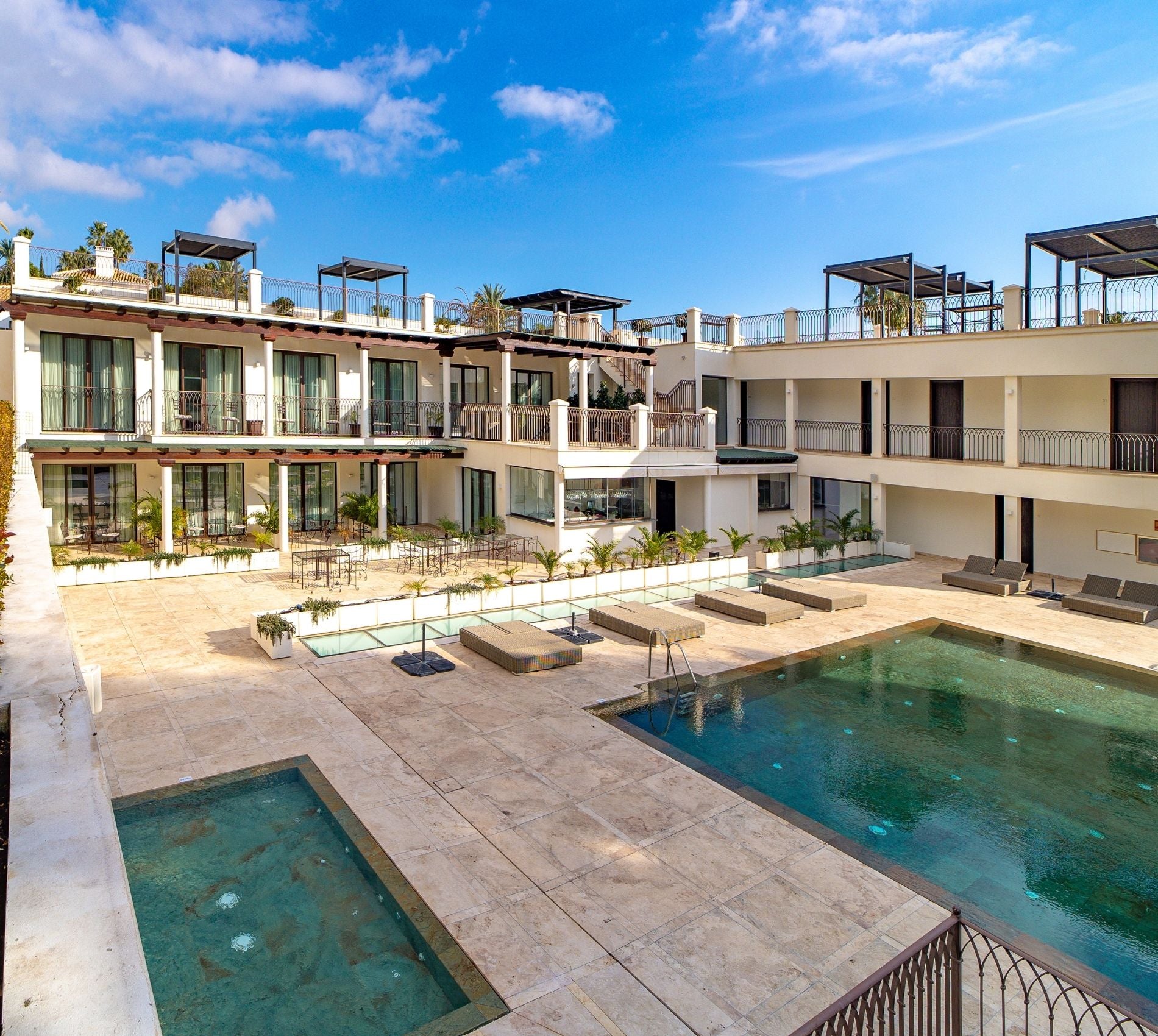 Twenty-five rooms arranged around sunlit pools and shaded courtyards. Warm stone, soft linens, and thoughtful lighting create a sense of ease. Public spaces include the enhanced wellness facilties, hydrotherapy circuits, meditation room, reading lounge, and garden terraces.